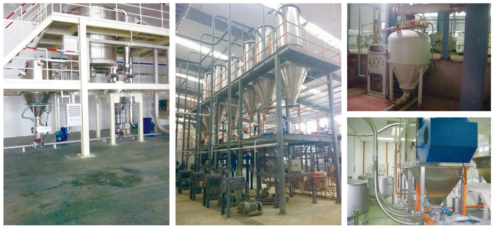 在該系統(tǒng)的開始端約有600m/min的加速度,在末端可達(dá)1300m/min的高速,因此氣流速度較高。輸送管線初端壓力一般低于0.1Mpa,而末端則與大氣壓基本接近。稀相輸送的介質(zhì)一般采用空氣或氮氣,動力提供一般由羅茨真空泵提供。羅茨真空泵的稀相輸送時,物料在管道中呈懸浮狀態(tài),輸送距離達(dá)百米,稀相負(fù)壓的主要特點是可以從低處或散裝處多點向高處一點或多點進(jìn)行輸送。